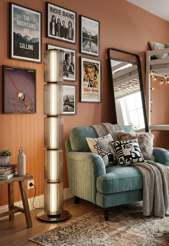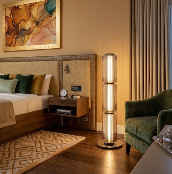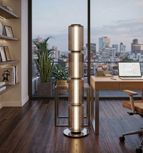 Pensada para convertirse en un punto focal dentro del espacio, Celine Floor aporta altura, equilibrio visual y carácter a salas, recámaras, estudios o áreas de lectura. Su silueta estilizada y su luz suave transforman el ambiente, creando una iluminación decorativa que complementa la arquitectura interior.